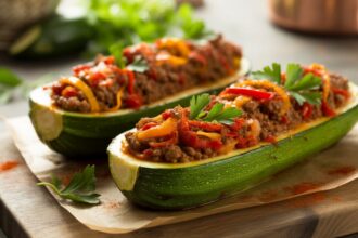 Discover the vibrant fusion of flavors in Loaded Zucchini Boats—tender zucchini filled with a savory beef and veggie medley. This…